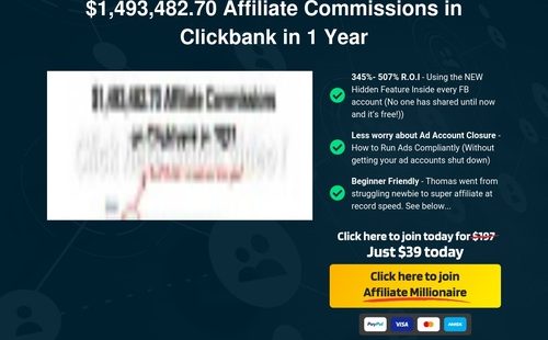 Product Name: Affiliate Millionaire – Super Affiliate Training – How I Went From Newbie To Generating $1,493,482.70 Affiliate Commissions in Clickbank in 1 Year