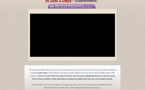 The video presentation above shows you some unique and rare tips on how to treat almost any type of bacterial vaginosis naturally in just 3 days. This is based on the latest scientific research on how to stop the actual CAUSE of 98% of BV conditions. *And if you also suffer from yeast infections, then the moves highlighted above will help you tackle most of these conditions while restoring your energy and vitality faster then you ever thought possible.