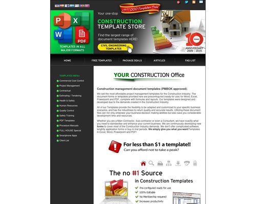 We sell the most affordable project management templates for the Construction Industry. The document forms or templates provided here are preconfirgured (ready for use) for Word, Excel, Powerpoint and PDF, complete with formulas and layouts. Our templates were designed and developed due to the demands created in the Construction Industry.